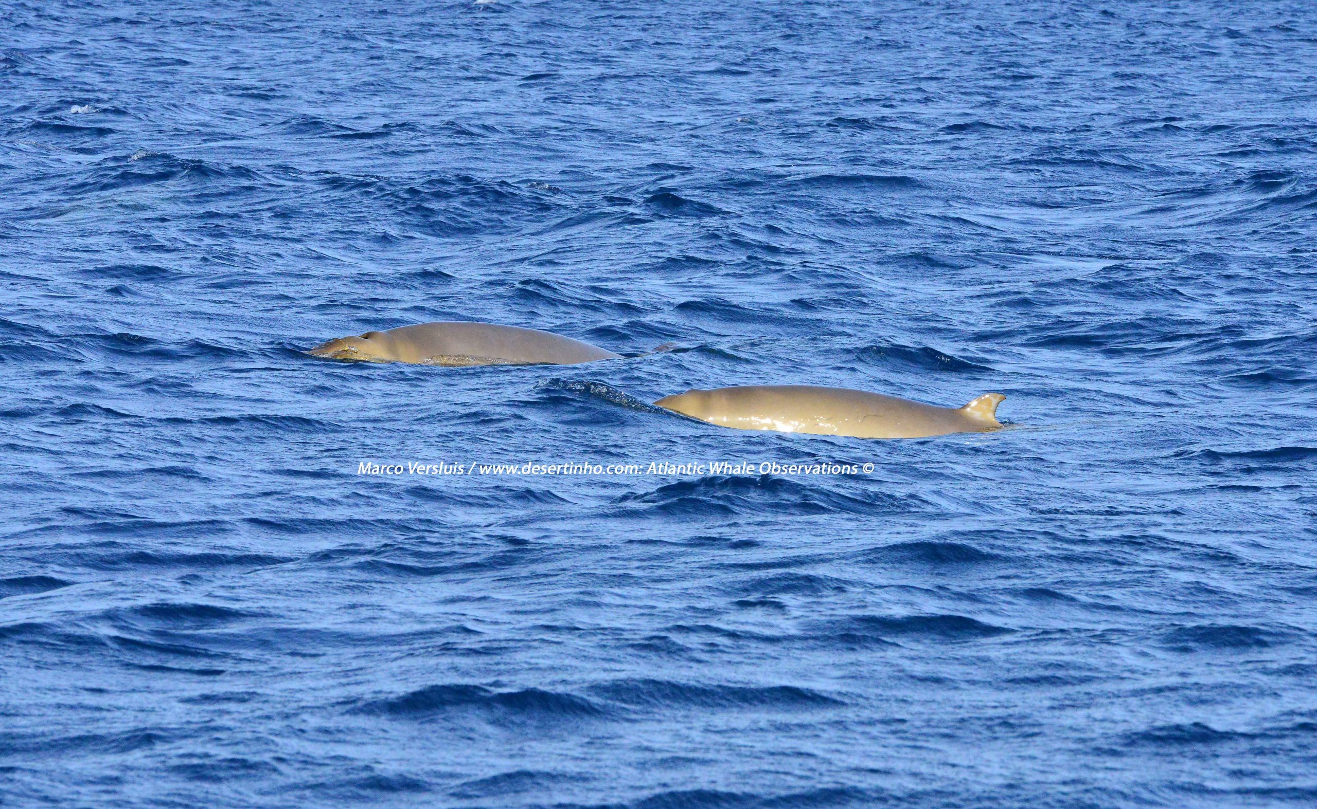 In winter 2019 I spotted the Blainville’s beaked whales myself and not just one of them but 3 individuals! Surprising enough they were right in te front of the coastline of Funchal (Madeira) and it concerned a male, female, and a calf. A very beautiful observation and for sure of a very rare whale species for the first time and even on photo for me.